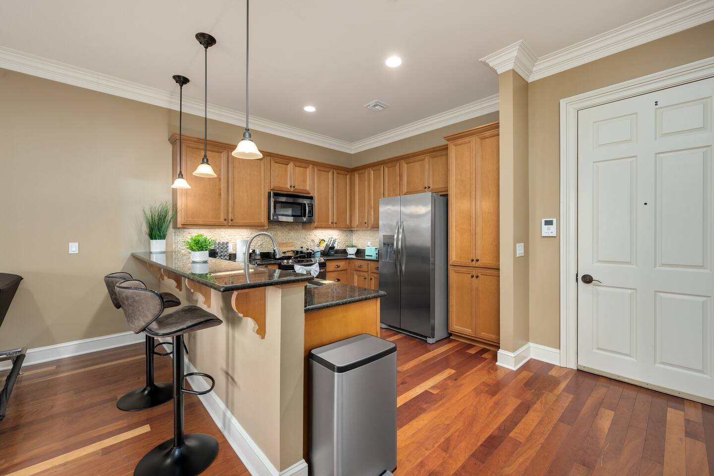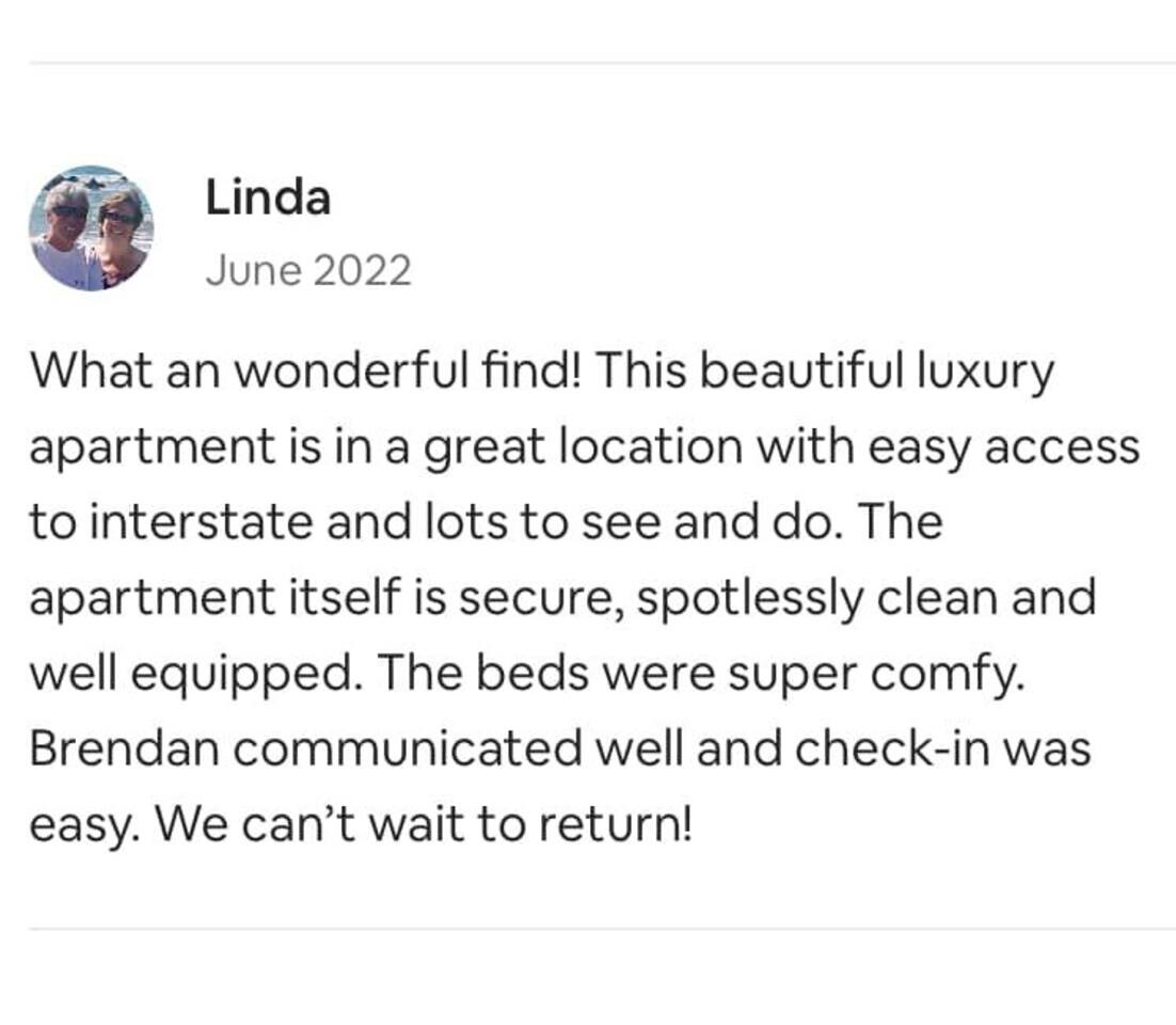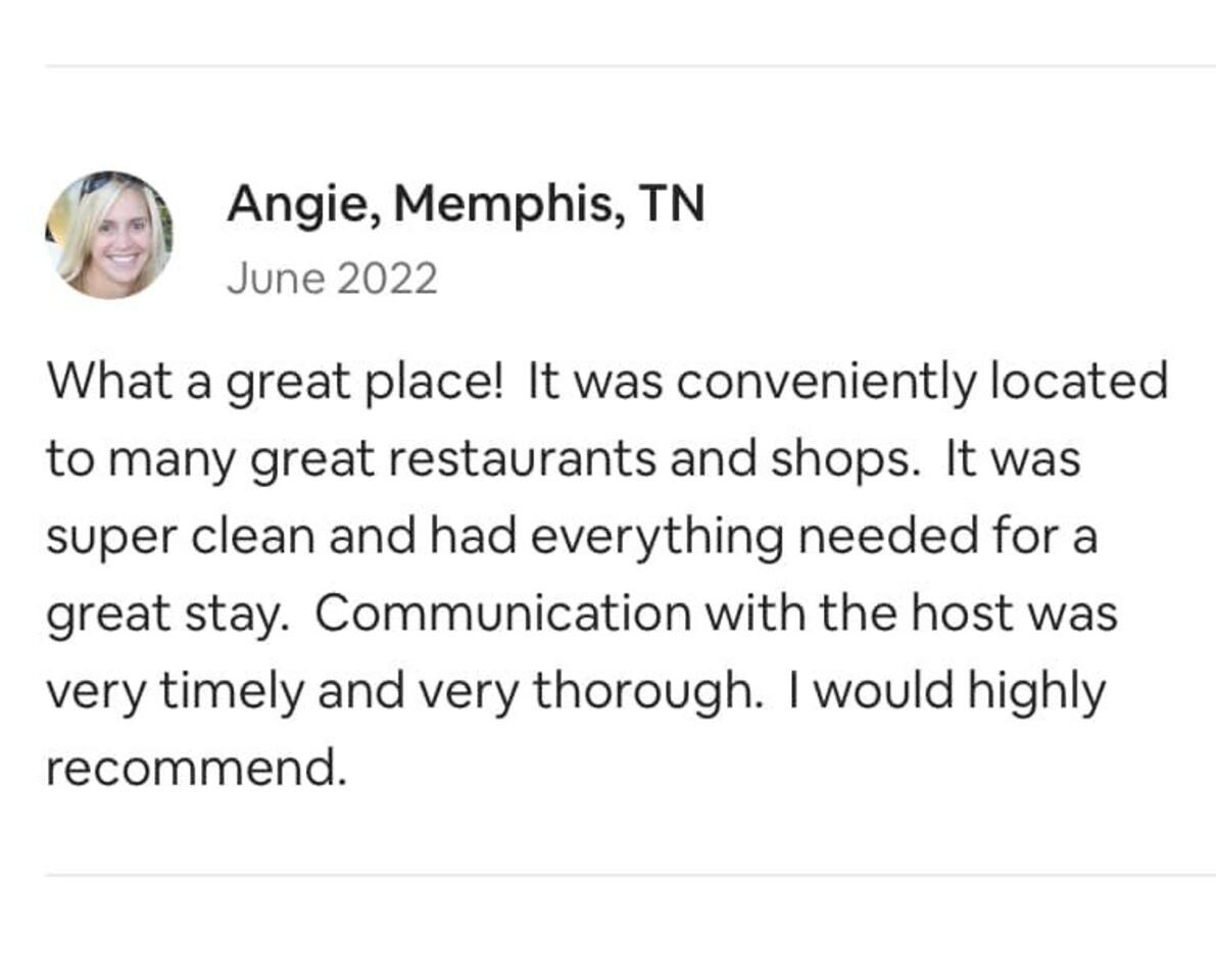 • Private space for your exclusive use • Key fob secured entry • Hardwood flooring in main living area, carpet in bedroom, tile in bath • Granite countertops • Stainless steel appliances • Refrigerator with ice maker and water dispenser • Grilling and picnic area • Full-size washer/dryer in unit • Forced air heating and cooling Check-in/Check-out: • Check-in: 4:00 PM - 10:00 PM CT • Check-out: Anytime before 11:00 AM CT • Early check-in available upon availability for a fee of $40 per hour • Late check-out available upon availability for a fee of $50 per hour Parking: •Plenty of available parking spaces outside the building #MurfreesboroTN #TheGatewayVillage #MiddleTennessee #Nashville #StThomasRutherfordHospital #TheAvenueMurfreesboro #Murfreesbo #ProperStays